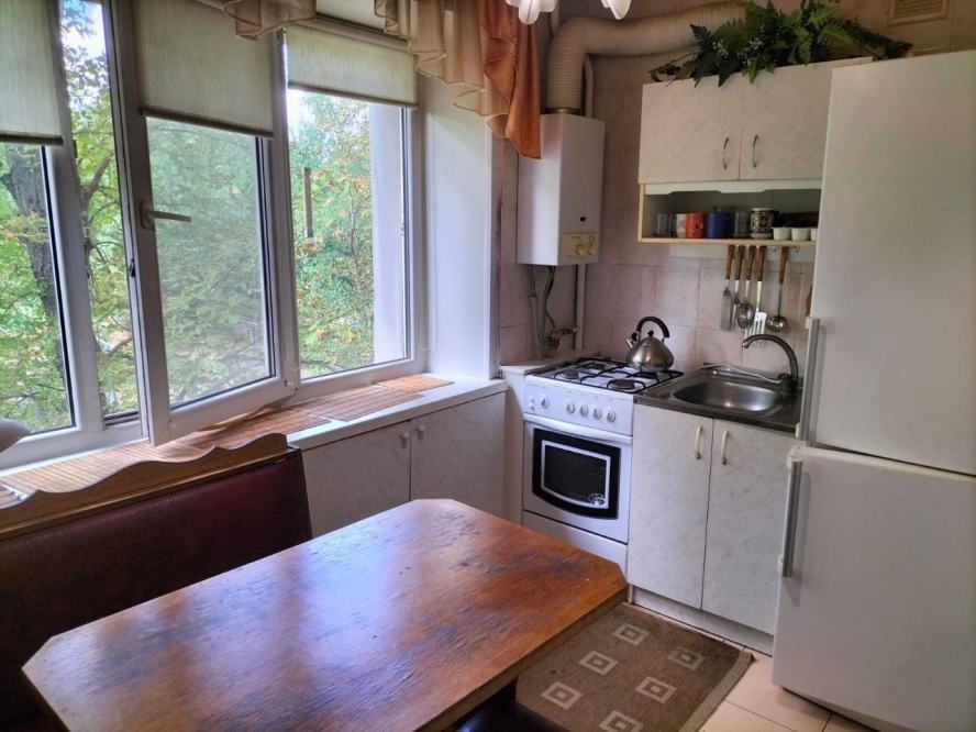 Продаётся 4-комнатная квартира на 3 этаже 5-этажного дома. Общая площадь составляет 58 квадратных метров, жилая — 43 квадратных метра, площадь кухни — 6 квадратных метров. В квартире есть балкон. Санузел раздельный, выполнен дизайнерский ремонт. Окна выходят во двор. Нет пассажирских и грузовых лифтов. Есть придомовая парковка. В квартире установлена плита, мебель на кухне, есть ванна. Коммуникации включают газ, центральный водопровод, электричество, центральную канализацию. Рядом находятся магазин, киоск, отделение банка, банкомат, парк, детская площадка, детский сад, школа, отделение почты.
