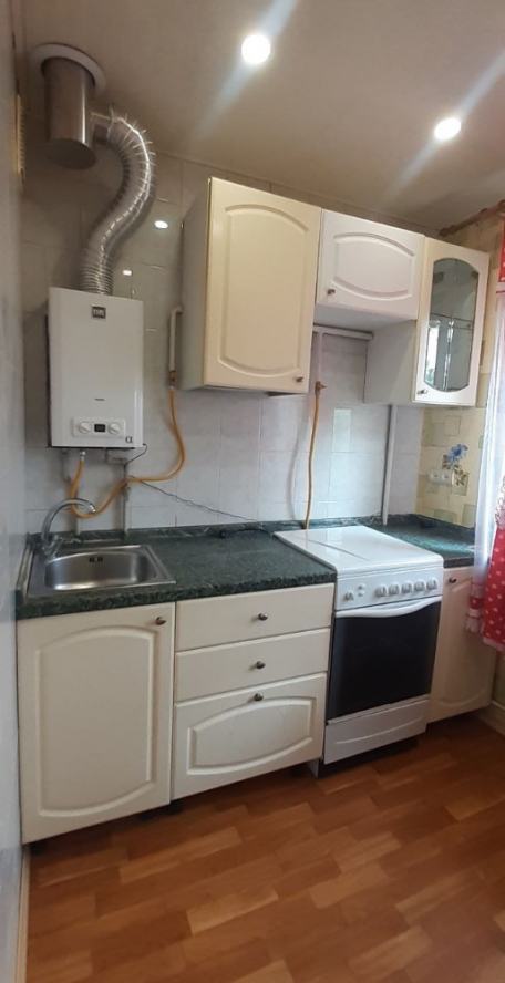Продажа квартиры в Ворошиловском районе ДНР, пр. Ватутина Предлагается к покупке уютная евро-двушка в самом центре города! Квартира расположена на пятом этаже пятиэтажного дома. Преимущества расположения: — в шаговой доступности парк кованых фигур и бульвар Пушкина; — рядом администрация города; — недалеко остановки общественного транспорта, удобная транспортная развязка; — поблизости множество супермаркетов, магазинов, кофеен, заведений и мест для развлечений, а также учебные заведения. Из окон открывается вид на кинотеатр «Звёздочка» и гостиницу «Дружба», окна выходят во двор. В квартире есть панорамный балкон с тёплым полом, освещением и местом для хранения. Планировка: — кухня совмещена с гостиной, пол покрыт ламинатом, кухня выполнена на заказ, есть встроенная техника (микроволновая печь, электрическая духовка, газовая плита, холодильник, газовая колонка); — совмещённый санузел с ванной, плиткой на полу, стиральной машиной, большим зеркалом и бойлером; — в спальне есть кожаная кровать, прикроватные тумбы, роутер и гардеробная; — угловая комната утеплена. Дополнительные преимущества: — узаконенная перепланировка; — встроенные полки с подсветкой над диваном; — раскладывающийся диван из дуба с местом для хранения вещей внутри; — установлен кондиционер; — пластиковые окна. Квартира полностью готова к проживанию!
