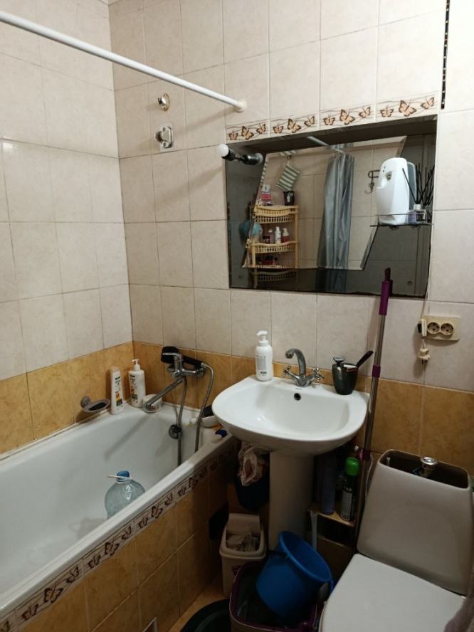Площадь 46/31/5,5 кв.м. Комнаты смежные, санузел совмещенный. Состояние хорошее жилое, мебель и бытовая техника остаются при продаже. Окна металлопластиковые, балкон - старое остекление. Водопровод пластиковый, счётчик на воду, счётчик на газ. Вода по графику.