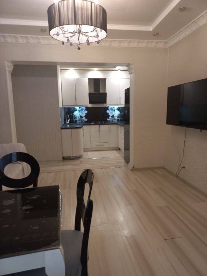 Апартаменты представительского класса на улице Коваля Просторные и светлые апартаменты площадью 154,4 м2 расположены на 25 этаже жилого комплекса премиум-класса «Королевская башня». Из панорамных окон открывается великолепный вид на город, стадион и реку Кальмиус. Ремонт выполнен дизайнерской студией YoDeezen с использованием премиальных материалов: дерево, мрамор, паркетная доска. Установлена современная система фильтрации воды, полы с подогревом. Встроенная кухня из массива натурального дерева, столешница и подоконники из мрамора. Итальянская мебель и двери от ведущих производителей. Бытовая техника премиум-сегмента от SMEG (Италия), сантехника Villeroy & Boch, смесители Webert. Люстра с позолотой и кристаллами Swarovski. Грамотное зонирование пространства включает большую кухню-гостиную, три отдельные спальни с гардеробом и хозяйским санузлом, гостевой санузел. Два балкона. Жилой комплекс предлагает собственную инфраструктуру: салон красоты, стоматологию, тренажёрный зал, подземный паркинг. Подъём на этаж осуществляется на лифте напрямую. Есть отдельный лифт для удобства жильцов. Детская площадка, охрана и видеонаблюдение обеспечивают безопасность и комфорт.