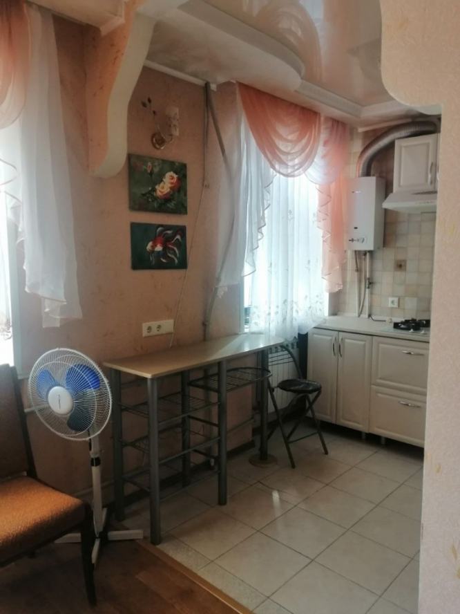 Продажа квартиры на Школьном бульваре, 19, Ворошиловский район Однокомнатная квартира с балконом на 3 этаже 5-этажного дома. Окна пластиковые, входная дверь — металлическая. В квартире есть газовая колонка, зимой тепло, летом сухо. Под окном нет машин, во дворе есть палисадник и плодовые деревья. Квартира с кирпичными стенами и раздельной планировкой, санузел совместный. Квартира в состоянии под чистовую отделку, заменены коммуникации. Есть балкон, застеклённый, но холодный. К квартире прилагается кирпичный подвал, вход с первого подъезда. В доме есть колясочная закрытого плана. Рядом с домом есть всё необходимое: садик, школа, магазины, аптека, сквер и река Кальмиус. До набережной — 0,5 км. Документы РФ готовы, никто не прописан.