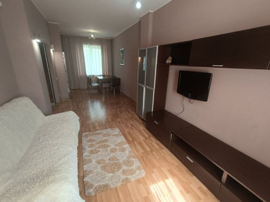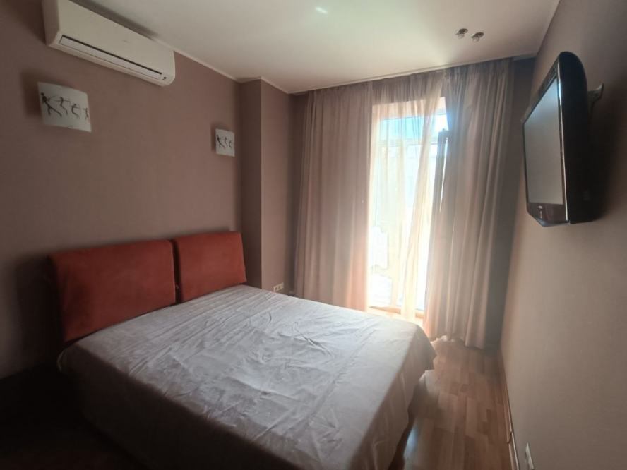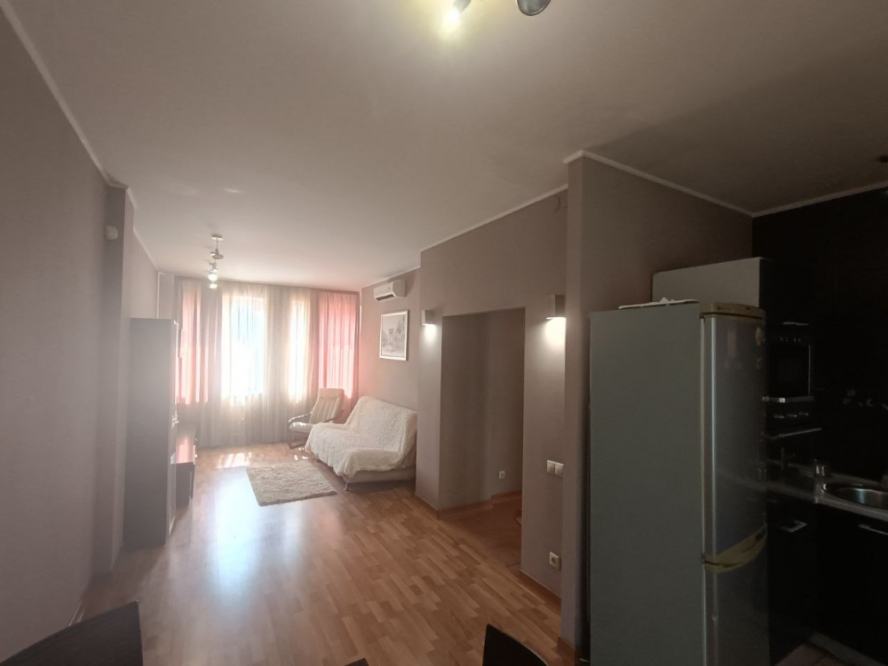 Продажа квартиры в Ворошиловском районе ДНР, пр. Ватутина Предлагается к покупке уютная евро-двушка в самом центре города! Квартира расположена на пятом этаже пятиэтажного дома. Преимущества расположения: — в шаговой доступности парк кованых фигур и бульвар Пушкина; — рядом администрация города; — недалеко остановки общественного транспорта, удобная транспортная развязка; — поблизости множество супермаркетов, магазинов, кофеен, заведений и мест для развлечений, а также учебные заведения. Из окон открывается вид на кинотеатр «Звёздочка» и гостиницу «Дружба», окна выходят во двор. В квартире есть панорамный балкон с тёплым полом, освещением и местом для хранения. Планировка: — кухня совмещена с гостиной, пол покрыт ламинатом, кухня выполнена на заказ, есть встроенная техника (микроволновая печь, электрическая духовка, газовая плита, холодильник, газовая колонка); — совмещённый санузел с ванной, плиткой на полу, стиральной машиной, большим зеркалом и бойлером; — в спальне есть кожаная кровать, прикроватные тумбы, роутер и гардеробная; — угловая комната утеплена. Дополнительные преимущества: — узаконенная перепланировка; — встроенные полки с подсветкой над диваном; — раскладывающийся диван из дуба с местом для хранения вещей внутри; — установлен кондиционер; — пластиковые окна. Квартира полностью готова к проживанию!