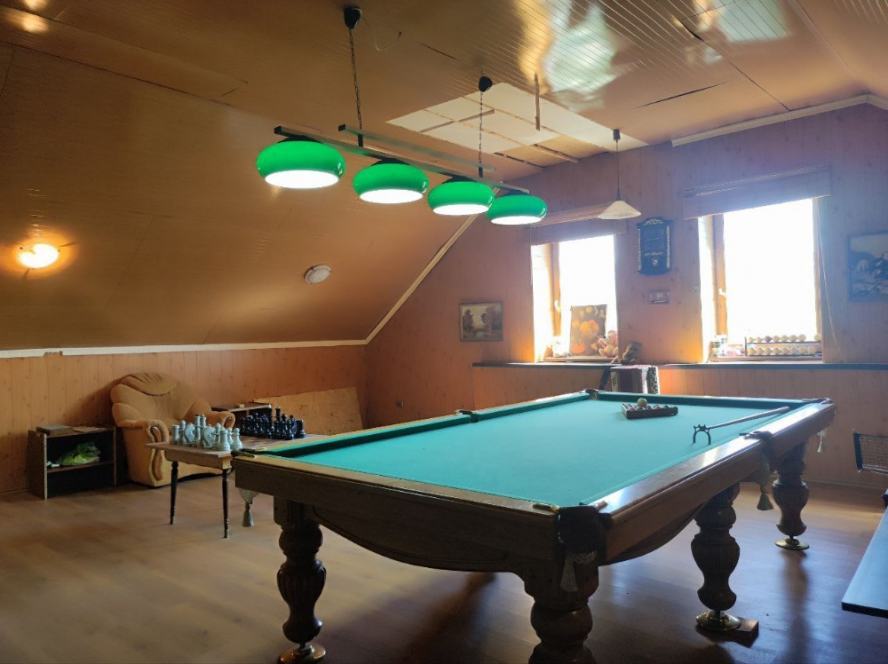 Продам современный 2-х этажный жилой дом в Киевском р-не Донецка. ЖД рынок, Галактика. 305 квадратов, отличная планировка, 3 спальни, столовая, гостиная с действующим камином, 2 санузла, просторная кухня. огромная помещение с зонами отдыха, бильярдным и теннисным столами. В цокольном этаже встроенный гараж с подсобными помещениями: коьная и станция водоснабжения, прачечная, тренажёрный зал, кладовая. Дом из шлакоблока, газифицирован, индивидуальное отопление, центральная канализация, ограждение, замощение, зона отдыха. 5 соток земли. Документы готовы.