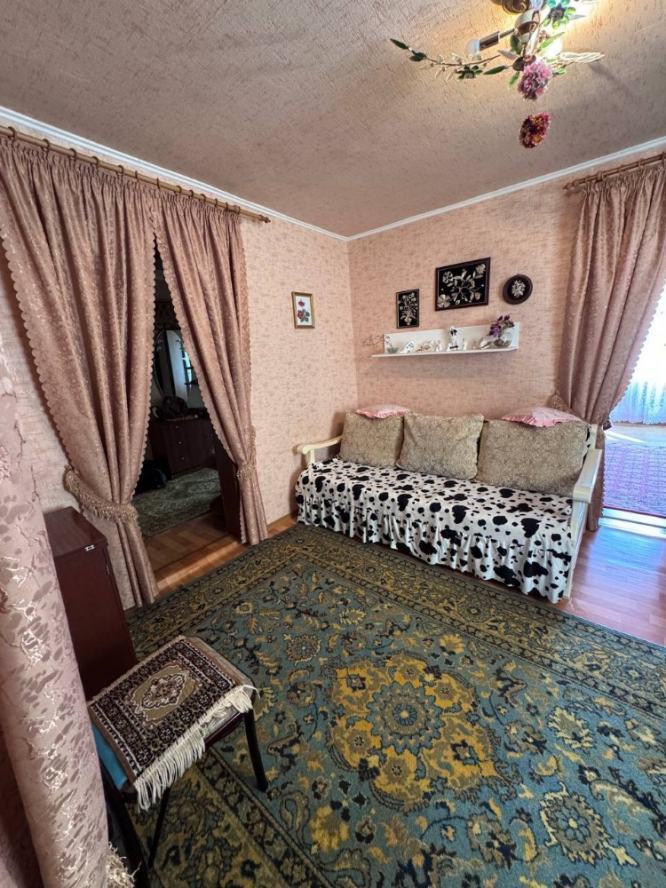 В продаже дом 76м², 4 просторные комнаты. Санузел.Накопительный бак с насосом(для воды) Индивидуальное газовое отопление.Участок: 12 соток(не приватизирован),ухоженный с различными плодовыми деревьями.Двор выложен плиткой.Летняя кухня.Гараж.Есть отдельностоящий гостевой дом. Просторный подвал 2.5м высота, с тремя комнатами.Хорошая локация дома(находится недалеко от Гвардейского рынка и автостанции.все рядом:школа, детский сад, магазины аптеки и. т.д)