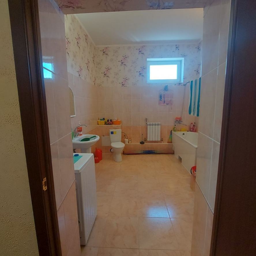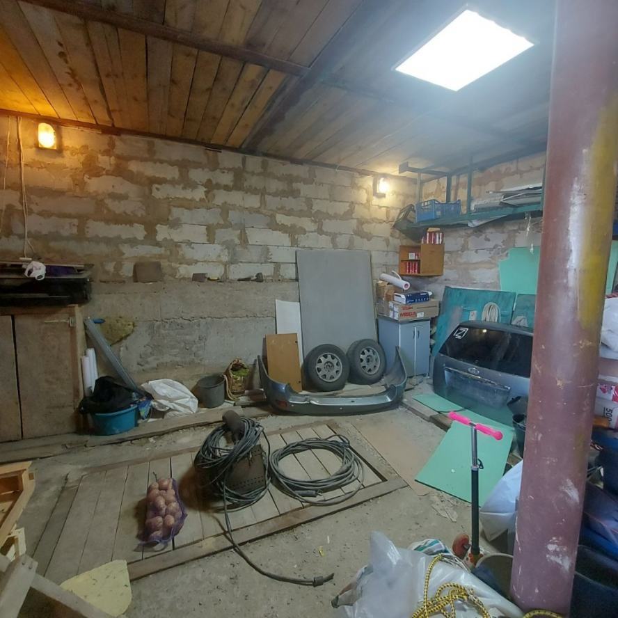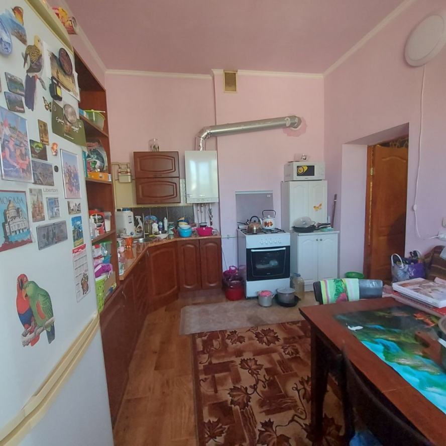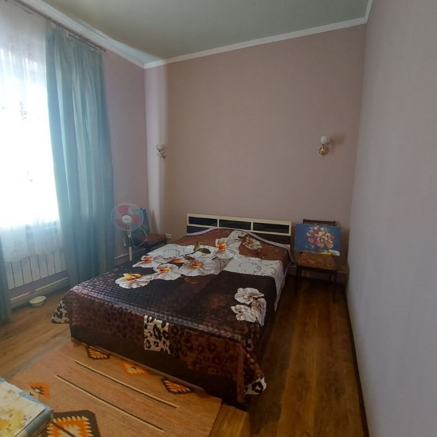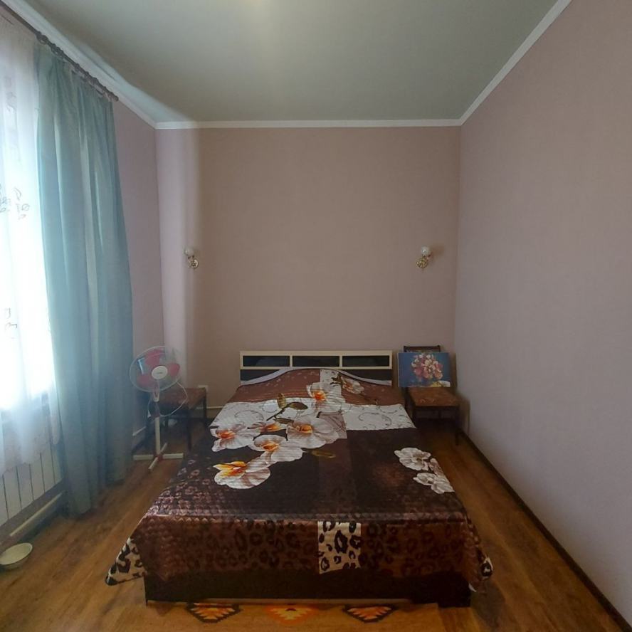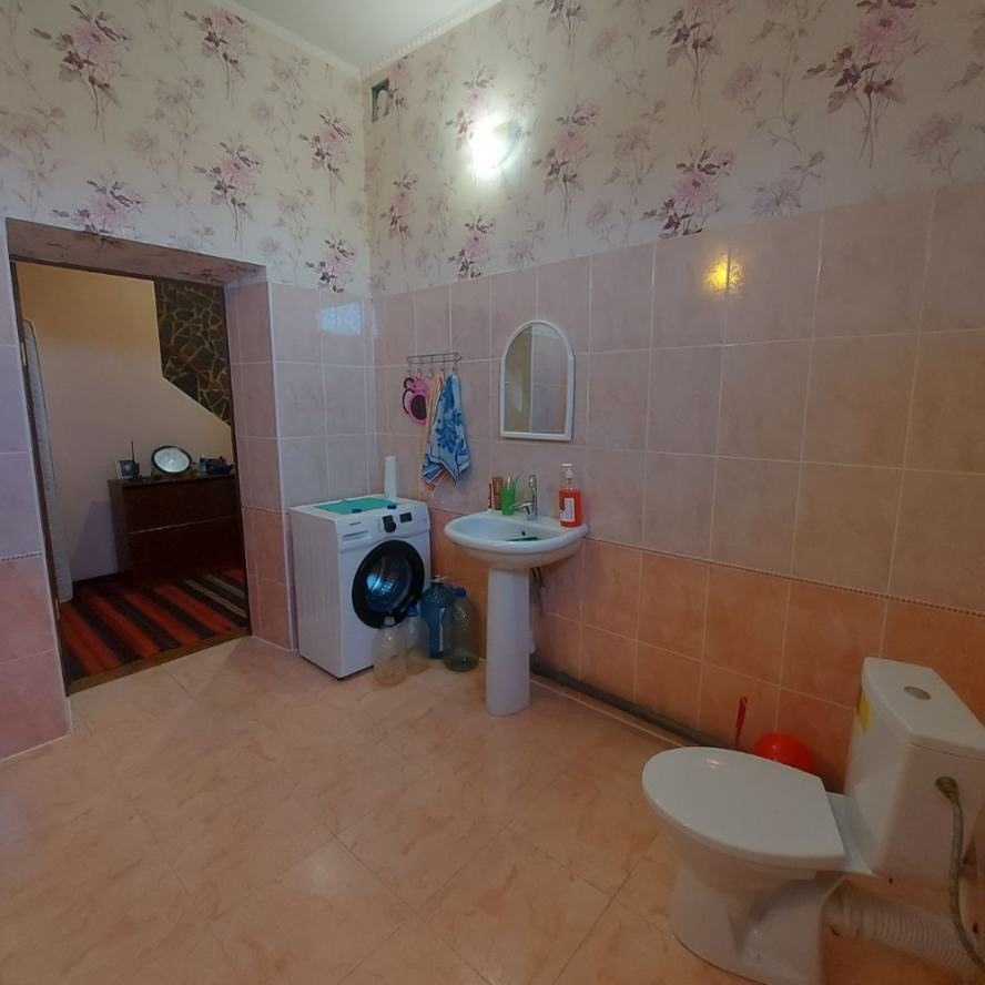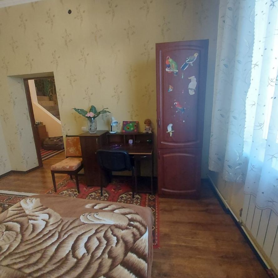 Продаётся большой дом на Цирке. Участок 7 соток, приватизирован. Возможно использование под офис, клинику. Возможно расширение участка за смешные деньги: соседний заброшенный участок 7 соток с шлакоблочным домом хозяйка отдаст недорого. Участок со всех сторон обнесён забором. За двором возможно размещение ав-топарковки на 5-6 авто. Улица освещается. Дом построен на фундаменте из 100 блоков ФБС-50 (бетон с добавлением гранитного щебня). Фундамент связан сплошным армпоясом толщиной 35 см (арматура 20 мм и сетка 3 мм). Снаружи фундамент утеплён пенопластом. Дом построен в четырёх уровнях. Общая площадь 400 м2. В настоящий момент жилая площадь составляет 250м2. Стены сложены из конструкционного автоклавного газобетона (изготовлен под заказ), через каждые четыре ряда перевязаны армпоясом (3 мм сетка и арматура 12 мм). Между этажами монолитные бетонные перекрытия, армированные арматурой 25 мм и сеткой 3 мм. Снаружи стены облицованы песчаником. Изнутри утеплены фольгированной плёнкой 5 мм. Газобетон имеет низкую теплопроводность, дом зимой тёплый, а летом сильно не нагревается, поэтому кондиционеры не ставили, на два месяца жары хватает вентиляторов. Высота потолков 3,30 м. Окна тонированные золотом, зеркальные. Высота окон 1,6 м. Туалет совмещённый с ванной на каждом этаже. Ванная комната 1-го этажа больше по площади, там планировалось установить мини-сауну, помешала война. В доме имеется двойной подвал площадью 40 м2: проветриваемый холодный под кухней (температура зимой +8-10С?) и тёплый (температура зимой +14-16С?). Оба помещения оборудованы стеллажами. Мансарда жилой площадью 70 м2 разделена на три помещения: бильярдную, кинозал с рабочим кабинетом и спортзал. Окна металопластиковые. Потолок утеплён стекловатой 100 мм, накрытой полиэтиленом. Имеется люк на чердак, весной обязательно открывается для вентиляции. Кинозал обшили магнезитовыми плитами 9мм, не подверженными сырению, но из-за начала войны отделку мансарды остановили. Жилая площадь с мансардой будет 320 м2. Каркас мансарды выполнен из обработанного инсектицидом бруса 100х50 мм, Кровля выполнена из теплостойкой черепицы «Биолайн» модели «бегущая волна» малахитового цвета. Трубы системы отопления выведены на мансарду. Электропроводка разведена во все помещения: 1-й этаж сечением 4 мм; 2-й этаж - 2,5 мм. В каждой комнате по 3-4 розетки, в спальнях и залах настенные светильники. Зал первого этажа имеет регулируемое освещение. Водопровод выполнен из пластиковой трубы высокого давления, разводка по дому также. Установлен счётчик. Кроме того в переулке имеется колонка. Сливная яма (2,75х2,75х2,8) построена из красного кирпича и накрыта бетонным монолитом, облицована песчаником и брусчаткой. При использовании септиков требует откачки раз в 4 года. Для слива использованы гофрированные двухслойные трубы во дворе (положены на бетонный армированный фундамент) и обычные пластиковые, упрятанные в короб. Рядом с ямой растёт крымская сосна. Гаражный бокс на два авто (высота 2,85 м) имеет смотровую яму и (из-за ме-стоположения дома на уклоне) - антресоль высотой 1,85 м, её планировали использовать как склад, площадью 40 м2. В гараже стоит стеллаж, на стенах прибиты полки. Оба гаражных бокса оборудованы водопроводом и системой слива для мытья авто зимой. Отделку гаража отложили из-за войны. Дом газифицирован, стоит мощный котёл Viesmann. Ус