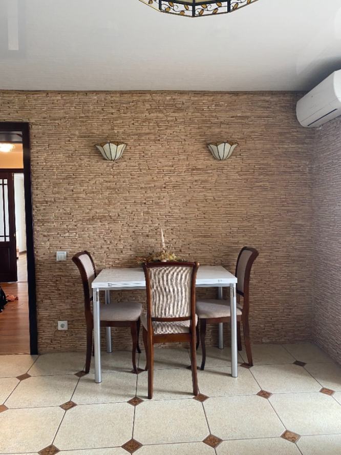 **Квартира на Партизанском проспекте, Киевский район** Представляем вашему вниманию уютную четырёхкомнатную квартиру в Киевском районе ДНР. Квартира расположена на пятом этаже пятиэтажного панельного дома. Общая площадь — 67 м2. Преимущества объекта: * тёплая не угловая квартира; * пластиковые окна; * французский балкон; * кухня совмещена со столовой, что создаёт просторное и удобное пространство; * раздельный санузел; * жилое состояние; * централизованное отопление. В квартире есть всё необходимое для комфортного проживания: доступны Wi-Fi, кабельное и цифровое ТВ, скоростной интернет. Коммуникации в полном порядке — есть газ, центральный водопровод, электричество и центральная канализация. Район с хорошо развитой инфраструктурой: * школа — через дорогу; * детские сады — напротив дома; * остановка общественного транспорта — рядом с домом; * поблизости есть аптека, больница, поликлиника. В округе есть озёра и леса — отличное место для прогулок и отдыха на природе.