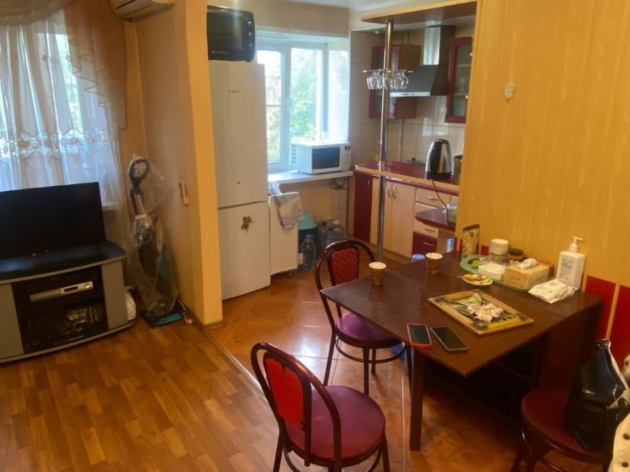 Продаётся трёхкомнатная квартира в Калининском районе ДНР. Расположена на втором этаже трёхэтажного дома. Сталинка. Общая площадь — 64 м , жилая площадь — 44 м , площадь кухни — 8 м . Высота потолков — 2,90 м. Квартира в хорошем жилом состоянии, частично установлены пластиковые окна, застеклён балкон. Санузел раздельный, оформлен кафелем. Есть необходимая мебель и техника, газовая колонка. В придачу к квартире идут металлический гараж рядом с домом и сарайчик с подвалом. Документы готовы, квартира приватизирована и внесена в Росреестр.