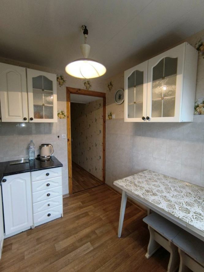 Просторная и светлая квартира с современным ремонтом Продаётся уютная и просторная квартира, которая идеально подойдёт для комфортного проживания. Дом утеплён, снаружи произведён ремонт. Все коммуникации заменены, пол перестелен. Балкон обшит пластиком. Установлены новые деревянные двери. Кухня встроенная. В спальне есть встроенный зеркальный шкаф-купе. Характеристики: тип дома: жилой фонд 80–90-х годов; материал стен: кирпич; планировка: раздельная; санузел: совместный; состояние ремонта: жилое; отопление: централизованное; бытовая техника: кондиционер, плита, стиральная машина, холодильник; интернет и ТВ: Wi-Fi, кабельное и цифровое телевидение, скоростной интернет; комфорт: кондиционер, парковочное место, мебель на кухне, гардероб, балкон или лоджия; коммуникации: газ, центральный водопровод, асфальтированная дорога, центральная канализация; инфраструктура: аптека, центр города, остановка транспорта, ресторан или кафе, отделение почты, магазин или киоск, отделение банка или банкомат, супермаркет или ТРЦ, парк или зелёная зона. Квартира полностью готова к заселению. Продаётся с мебелью.
