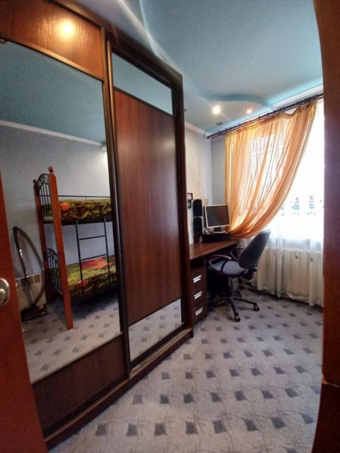 Продаётся двухкомнатная квартира от собственника в Центральном районе, по адресу: улица Орджоникидзе, дом 90А (ориентир — магазин со Львом, за парком по 22-ой линии). Второй этаж двухэтажного дома. Крыша двускатная, шиферная, отремонтирована. Общая площадь квартиры — 49 кв. м., высота потолков — 2,86 м. Две комнаты жилой площадью 27,8 кв. м. (12,3 + 15,5), кухня — 5,8 кв. м. Окна деревянные. Есть балкон и кладовка, а также подвал в доме. Газовые колонка, плита и счётчик, разводка воды из пластика, батареи чугунные, после капремонта сделана пластиковая разводка отопления (котельная рядом). В квартире остаётся мебель: две кровати, диван, тумбочки, шкафы, холодильники. Состояние — «бабушкин» вариант, но пригодный для проживания.
