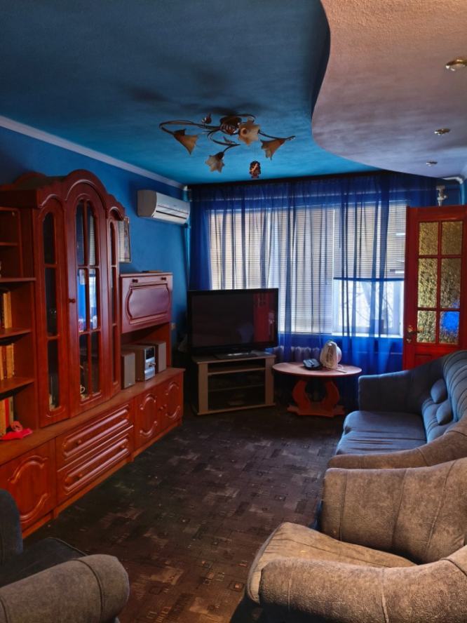 Донецк, Театральный проспект, 11 Количество комнат:3 Общая площадь:50 м2 Жилая площадь:34 м2 Площадь кухни:5.9 м2 Тип дома:Кирпичный Этаж:3 /5 ХРУЩЕВКА Квартира расположена в самом центре города. В пределах 5 минут пешком рядом расположены: центральная площадь города - площадь им. Ленина бульвар им. Пушкина парк им. Щербакова Оперный и драматические театры множество кафе и ресторанов, кинотеатры, ТЦ, БЦ Центральный корпус донецкого национального университета школа и садик городская и областная администрация Дом окружен зеленью, уютный, тихий зеленый дворик с парковкой. Квартира требует ремонта. Все работает: канализация, водопровод и проводка. Но квартира продается под ремонт. Паркет требует реставрации или замены. Новые пластиковые окна в кухне и гостинной (балконная группа), в двух спальнях старые деревянные окна, входная дверь и межкомнатные двери - под замену. Сравнивая цены на квартиры с ремонтом, лучше купить под ремонт и сделать его под себя. Документы (российские) полностью готовы к продаже. Ключи в агентстве недвижимости. О показе нужно будет договариваться заранее.