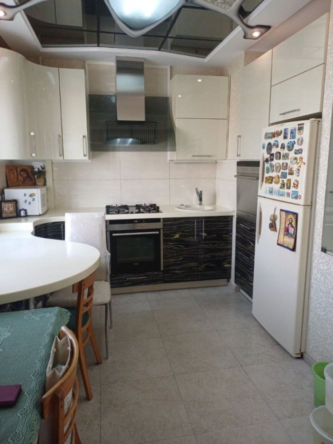 Продажа трёхкомнатной квартиры в Калининском районе ДНР, улица Калужская Предлагается к продаже уютная трёхкомнатная квартира в Калининском районе ДНР. Общая площадь — 65,4 м2, жилая — 43,4 м2, кухня — 8,6 м2. Квартира расположена в панельном доме. В квартире выполнен ремонт, она тёплая и готова к проживанию. Раздельный санузел, есть лоджия и балкон. Установлены плита, стиральная машина и холодильник. Доступны кабельное и цифровое ТВ. Центральное отопление, водопровод и канализация обеспечивают комфортное проживание. Подача воды осуществляется по графику, напор воды хороший. Район отличается тихой и спокойной атмосферой. В пешей доступности находятся парк, магазины, рынок, аптека, детский сад, поликлиника и остановки общественного транспорта. Рядом есть всё необходимое для комфортной жизни: школы, рестораны, кафе, отделения почты и банков, супермаркеты и ТРЦ, детская площадка. Документы готовы к сделке.