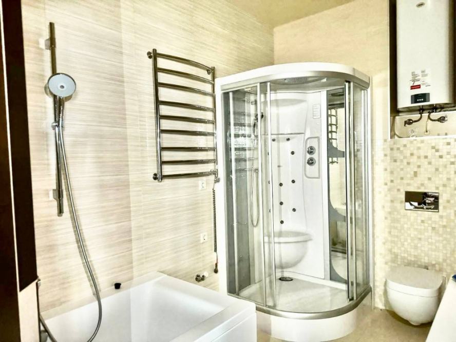 Роскошная четырёхкомнатная квартира 136 м2 в ЖК «ФАВОРИТ», Киевский район, улица Артёма Просторная и светлая квартира в современном жилом комплексе предлагает своим жильцам комфорт и безопасность. Расположенная на 11 этаже 24-этажного дома, она обладает отличным панорамным видом на город. В квартире предусмотрены две лоджии, просторная гостиная с эркером и большая спальня с собственным санузлом. Все комнаты раздельные, также есть второй санузел. Квартира подготовлена к чистовой отделке: установлены энергосберегающие окна, три контура тёплых полов, отдельные контуры отопления на радиаторы в каждой комнате, две гребенки и утепление полов. Подвесные потолки из гипсокартона утеплены и шумоизолированы, проводка выполнена кабелем ВВГ, стены шпаклёваны под грунтовку, установлен бак на 500 литров для воды. Дополнительные преимущества включают отдельный тамбур, два пассажирских и два грузовых лифта, автономное отопление и собственную газовую котельную на крыше дома. Закрытая охраняемая территория с видеонаблюдением, консьержем, парковкой, большой детской и спортивной площадками создаёт атмосферу безопасности и уюта. Отличное транспортное сообщение, близость к магазинам, школе и садику делают эту квартиру идеальным выбором для комфортной жизни. Документы готовы к продаже, планировка узаконена и зарегистрирована в ЕГРН.